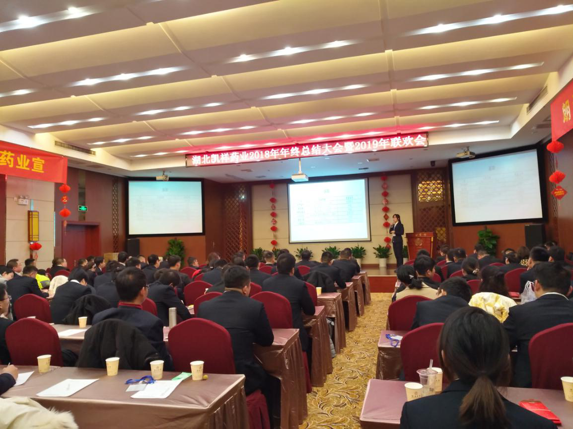 2019年1月12日下午,湖北凱祥藥業(yè)2018年度總結(jié)大會在空軍武漢梅園賓館舉行,凱祥藥業(yè)全體員工參加,公司董事長、銷售總監(jiān)、各部門經(jīng)理出席。